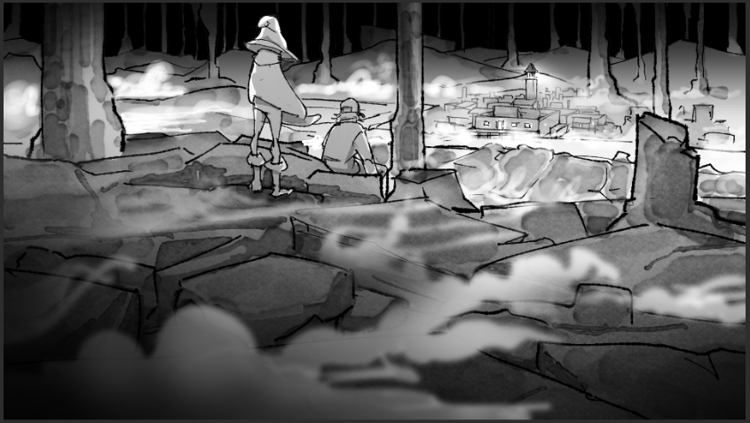 A collection of concept art pieces featuring imaginative and detailed scenes from various settings and environments.